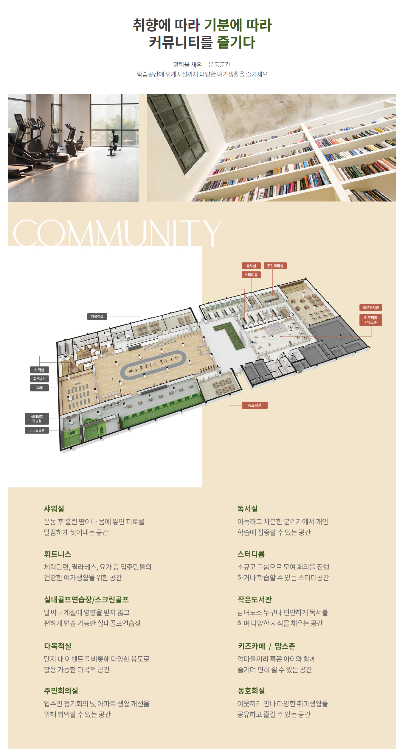 운동을 즐길 수 있는 공간부터 학습할 수 있는