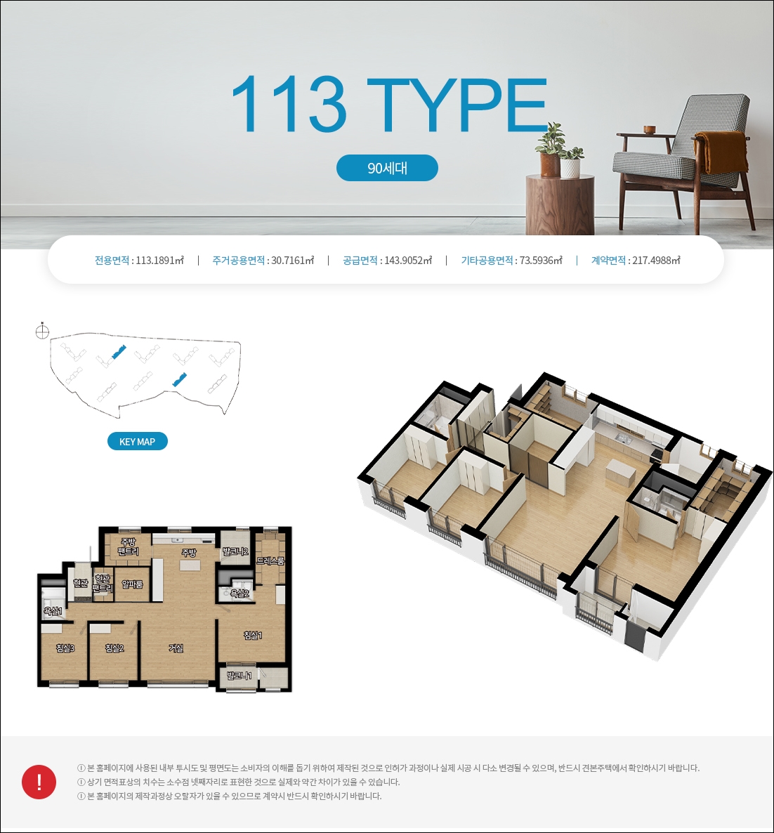 113㎡ 타입은 더 넓어진 거실과 침실, 그리고 또 하나의