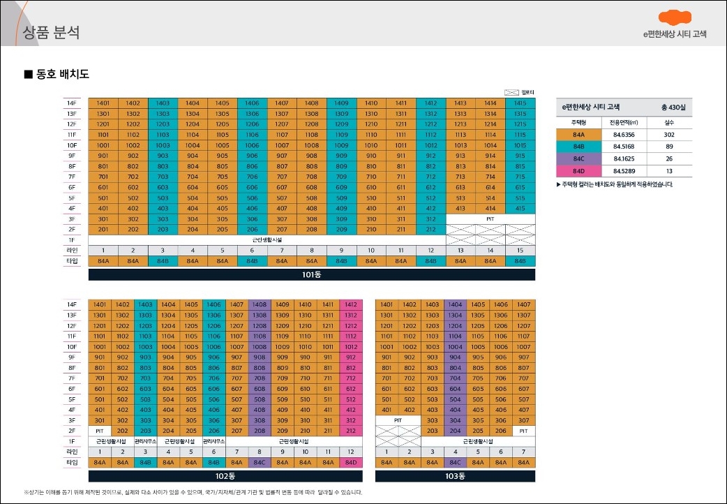 국민 타입인 84㎡가 4가지