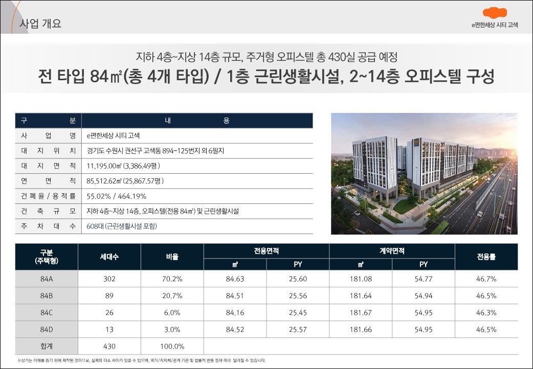 주거형 오피스텔 총 430실 공급 예정으로