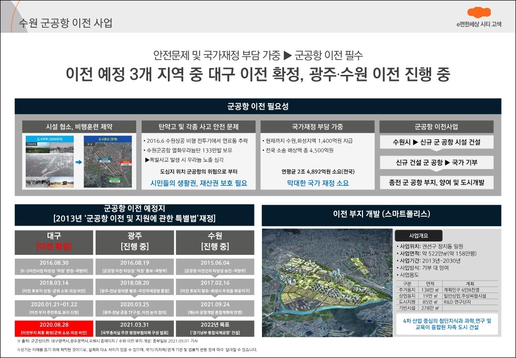 또한 군공항 이전 예정지로서 4차 산업 중심의