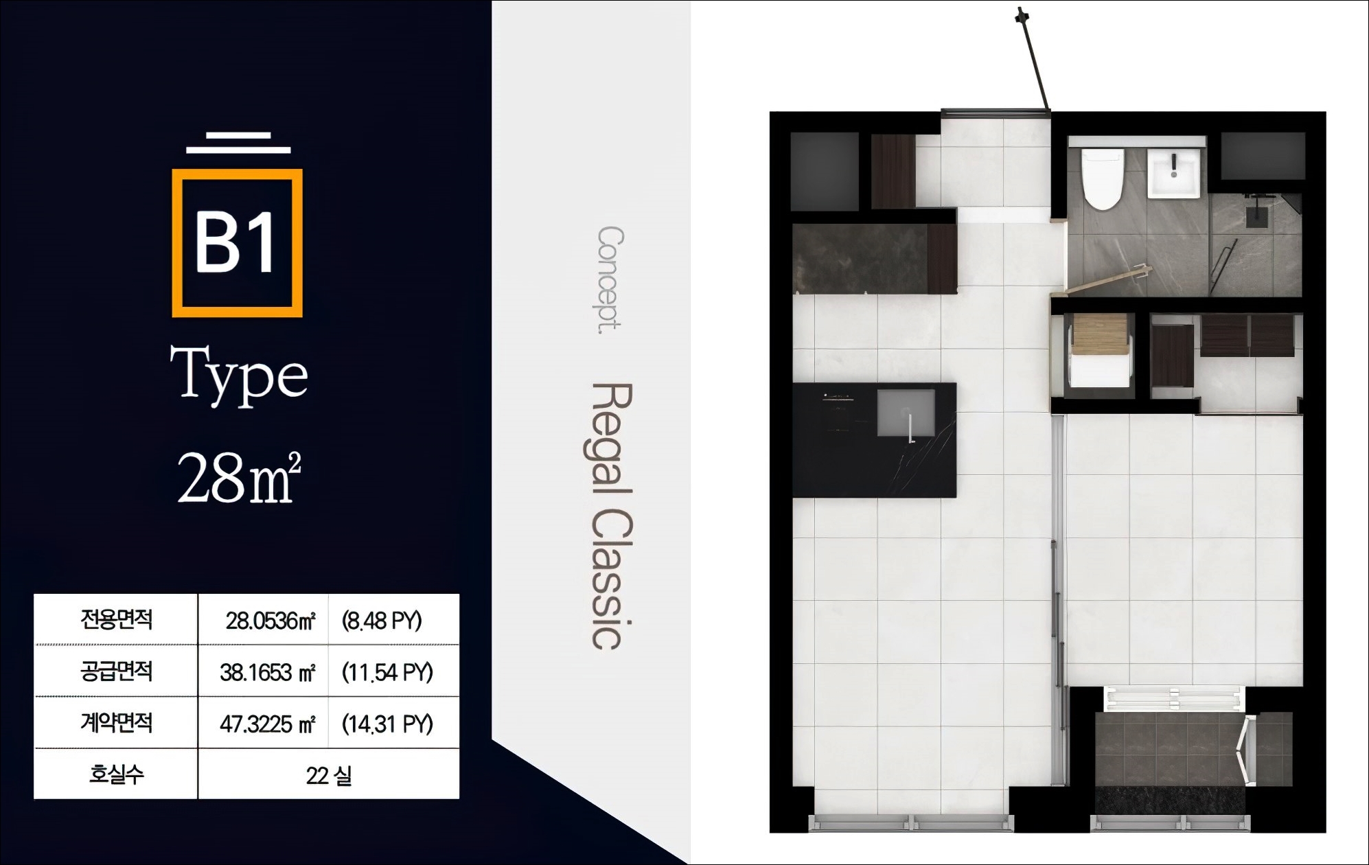 B1타입은 28M2이며 총 22호실로