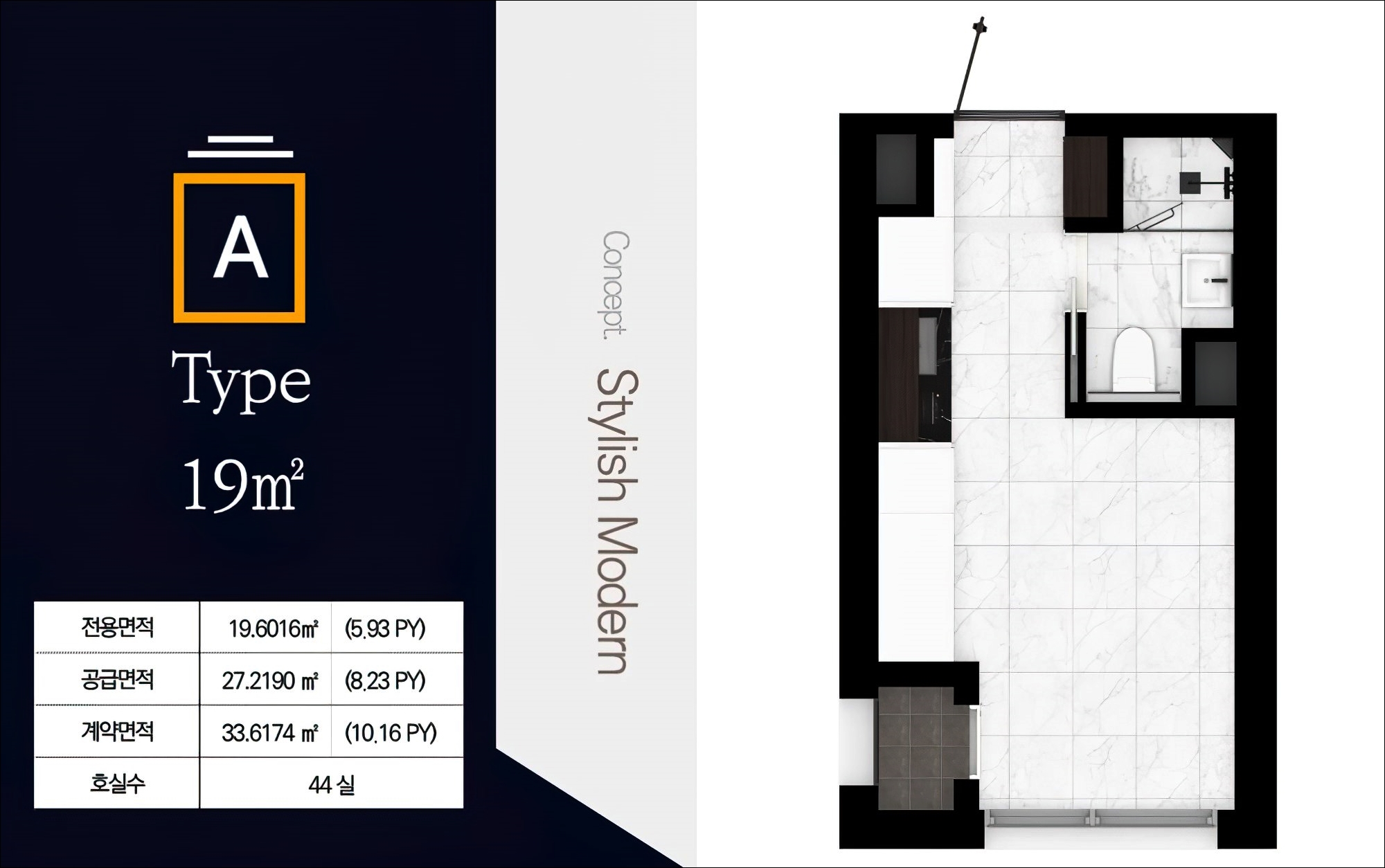 A타입은 19M2이며 44호실을