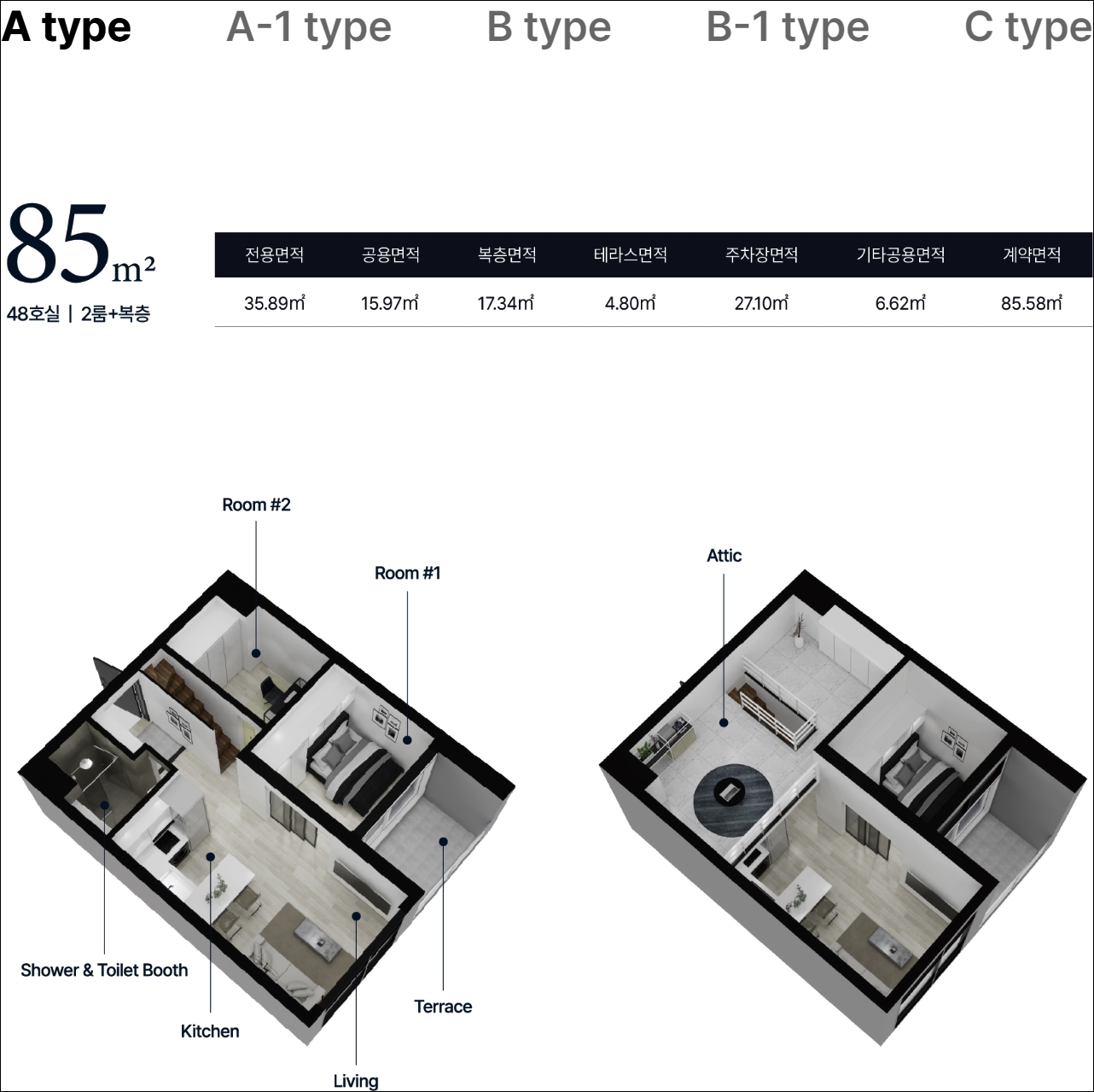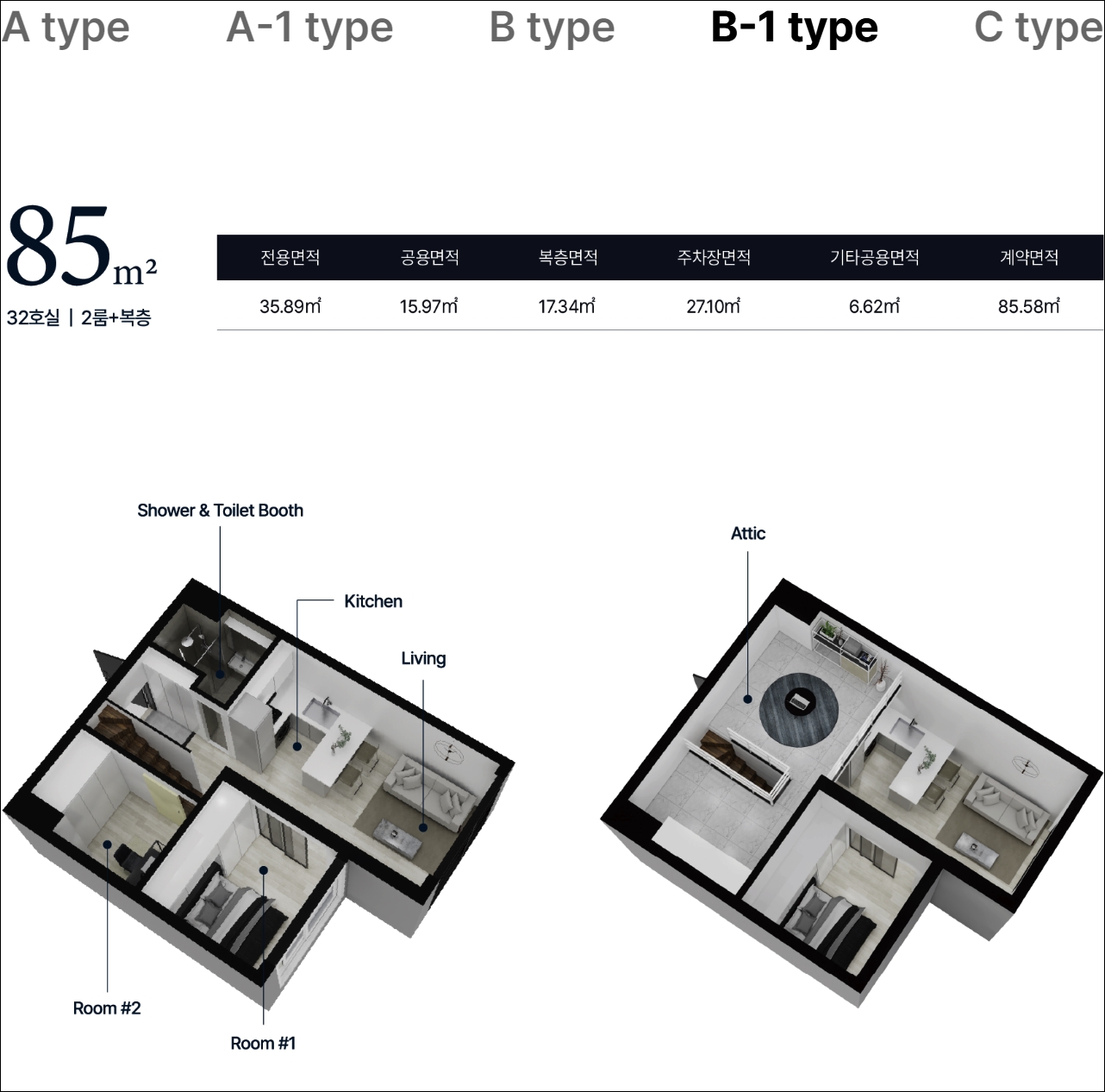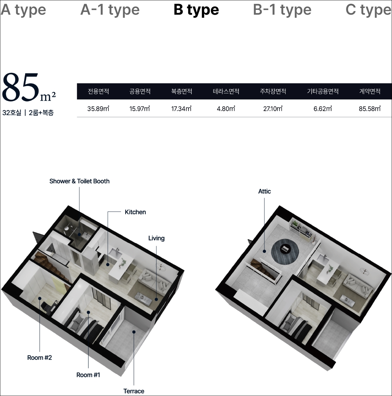 85 B타입은 2룸 복층형이고 다른 타입과