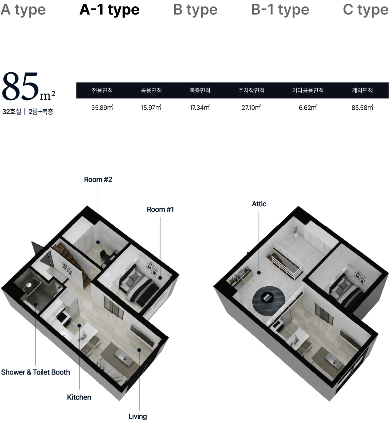 85 B타입은 2룸 복층형이고 다른 타입과