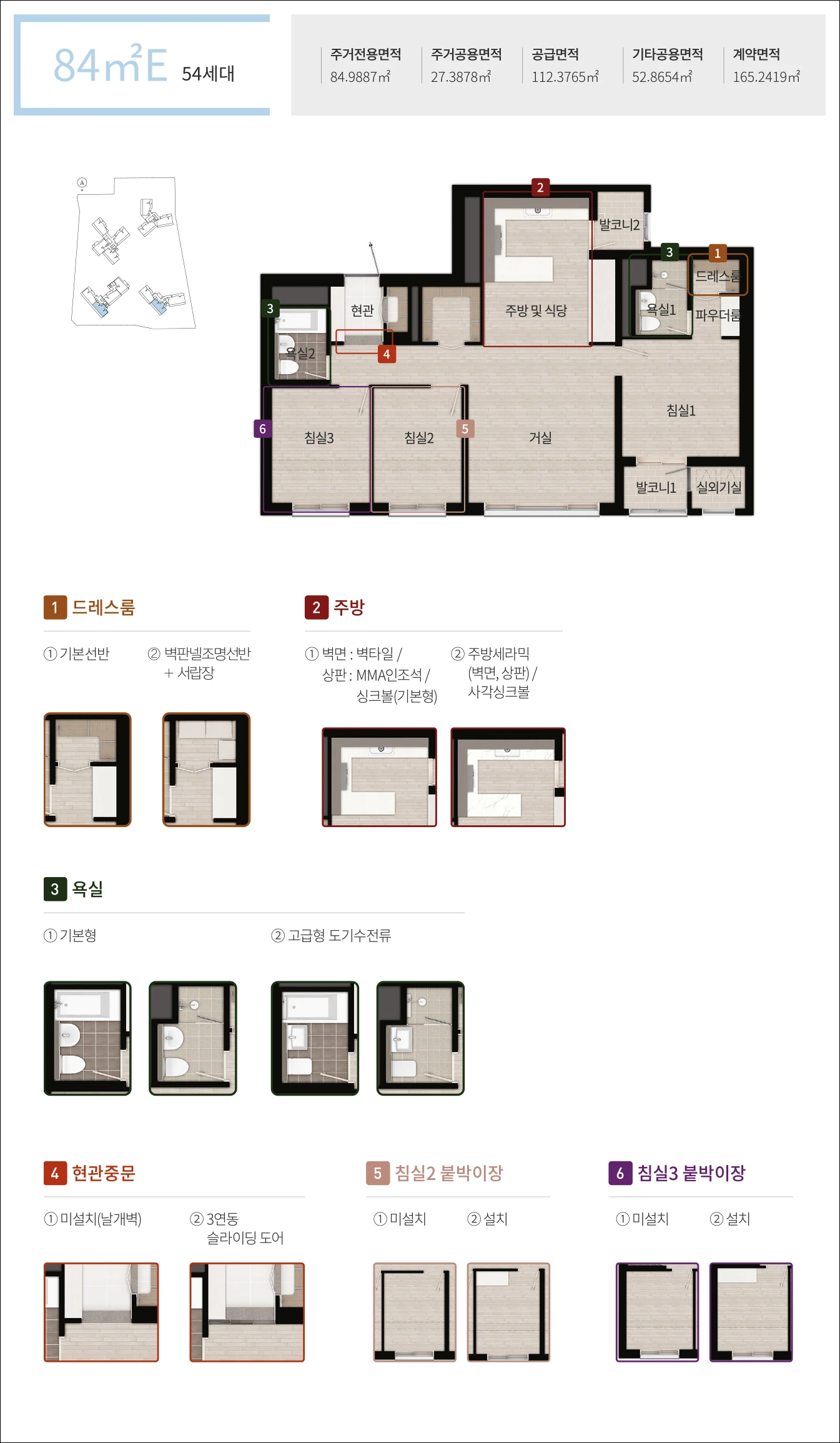 84E타입은 총 54세대 분양 예정이며 3룸입니다.